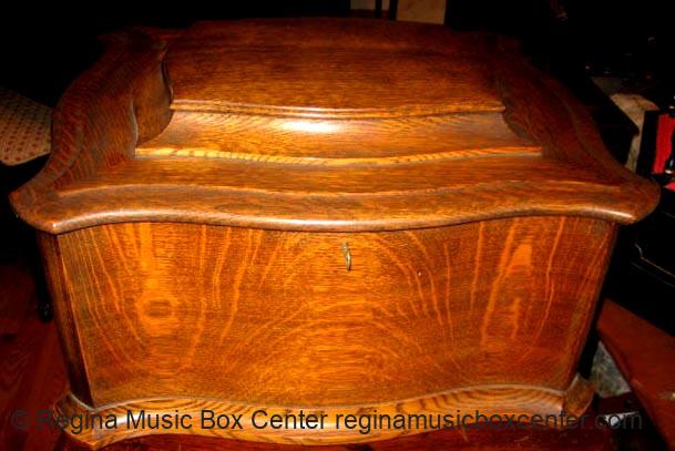 REGINA 15-1/2\" STYLE 50 OAK SERPENTINE DISC MUSIC BOX