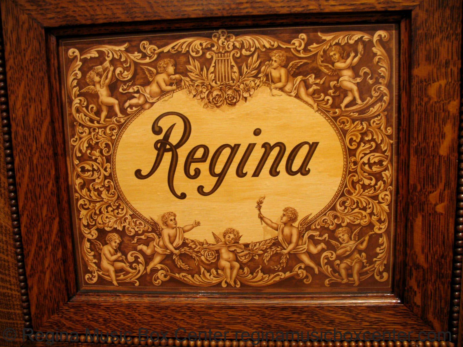 Regina Serpentine Disc Music Box. Style 50. 15-1/2\". Double comb. Short bedplate. Oak case. Mechanism restored. Case appears extremely nice original. This was Regina\'s most popular and best sounding table model disc music box. With 10 discs. Magnificent bright and deep tonal quality. Well cared for since new.